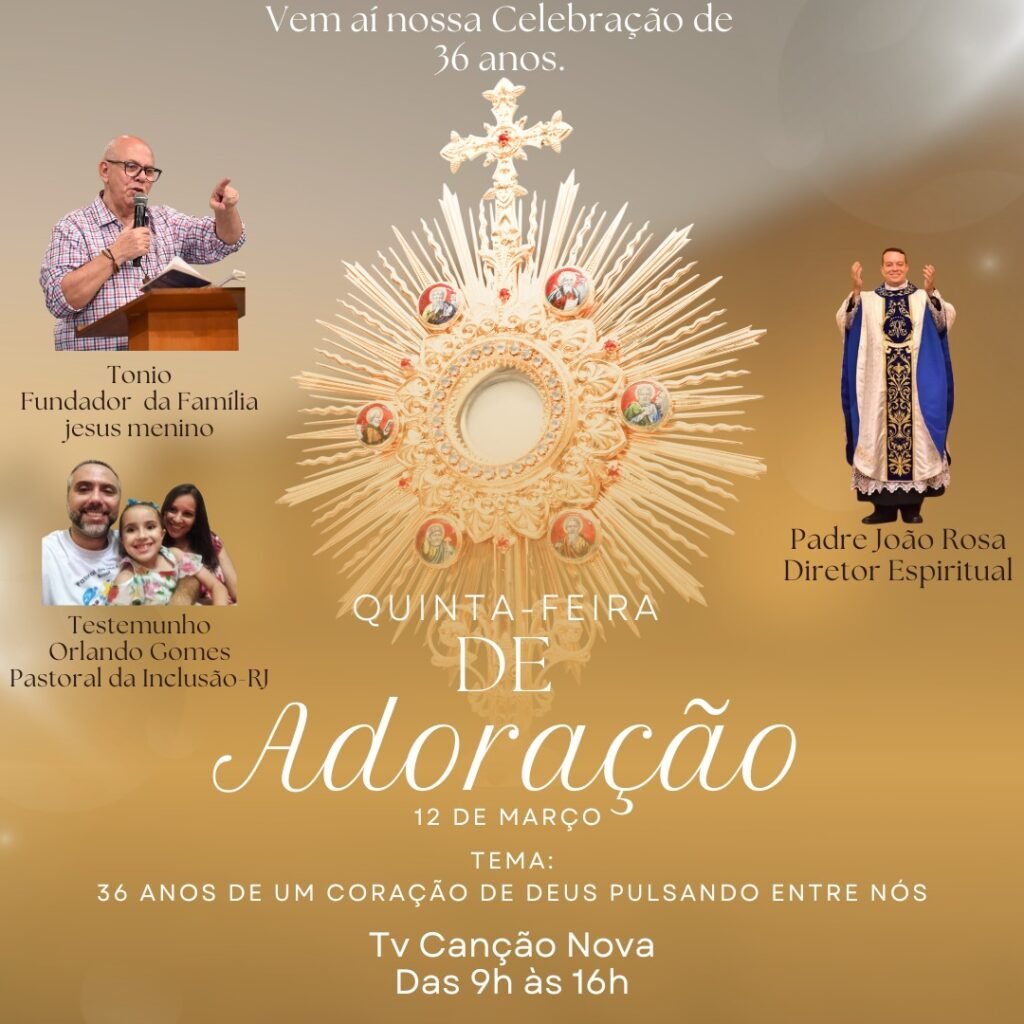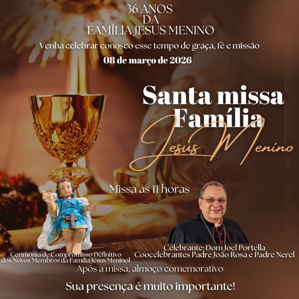 A Comunidade Jesus Menino celebra, com gratidão e alegria, 36 anos de caminhada, marcados pela fé viva, pelo serviço e pela missão confiada por Deus. No dia 08 de março de 2026, queremos nos reunir como família para render graças por tudo o que foi vivido até aqui e renovar, juntos, nosso compromisso com o […]